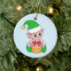Cute trendy Christmas elf on light blue Ceramic Ornament
