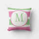 Cute Trendy Pink and Green Stripe Monogram Throw Pillow