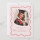 Cute Trendy Pink Wavy Border Graduation Invitation