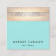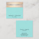 Cute Trendy Sequin and Gold Stripes Turquoise Square Business Card