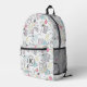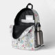 Cute Trendy Teacher Modern Colorful School Pattern Printed Backpack. Change to your Initial! Imagine a charming, simple sketched pattern featuring a delightful classroom and back-to-school motif. This pattern is the epitome of nostalgia, perfect for teachers, kids gearing up for the school year, college students, and anyone who appreciates the classic charm of school supplies. With every glance, it evokes memories of backpacks filled with books, sharpened pencils, and the endless possibilities of the classroom. This back to school pattern features books, clocks, calculators, notebooks, rulers, apples, glasses, protractors, stars and more. Mostly black and white with pops of color. Great for back to school for your children, or for a teacher appreciation or holiday gift.