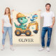 This personalized adorable blanket design features a charming baby dinosaur joyfully driving a miniature construction vehicle. With its playful expression and vibrant colors, this delightful creation adds a touch of enchantment to any space, appealing to everyone, especially kids and babies.