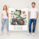 This personalized adorable and whimsical fleece blanket design features a charming baby dinosaur joyfully driving a miniature tractor. With its playful expression and vibrant colors, this delightful creation adds a touch of enchantment to any space, appealing to everyone, especially kids and babies.