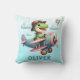 Cute Trex Dinosaur Flying a Charming Airplane Throw Pillow