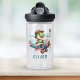 Fuel your little adventurer's journeys with this personalized water bottle featuring a charming dinosaur taking flight in a classic pink and blue biplane! Picture their imagination soaring as they stay hydrated with every sip. This fun and functional bottle is not just adorable, it's reusable and durable, keeping them company on every adventure. Personalize it with their name for a unique and cherished companion they'll love to carry everywhere.