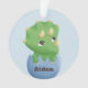 Rawr! A cute little baby triceratops has just hatched from a blue egg. Personalize this ornament with child's name.