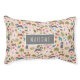 This comfy dog bed features a pattern of 3 different dogs, balancing pineapples and balls, chasing a lizard, wearing bandanas, jumping over balls, and just looking super cute! The tropical pattern also features flowers, palm trees, palm branches, flip flops, and leaves. Text template included for personalization! The background color can be customized to any color you'd like! Artwork exclusively created by Mabel and Moe (for Orabella Prints).