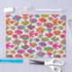 The cute cartoon style tropical fish on this tissue paper have pink, purple, orange, green, coral, and turquoise colors. Background is a blue on white swirled pattern. Suitable for birthdays or any special occasion!