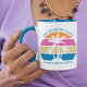 This cute tropical palm tree sunset mug is perfect for a spring break trip with your college sorority friends or a fun cruise ship getaway vacation with the family. Personalize a set of customized mugs as a fun keepsake for your group outing to the beach or an island family reunion.