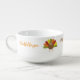 This cozy soup mug is a lovely gift for treasured friends and family members. The design features a cute turkey and the words "Happy Thanksgiving" and "Thankful for you". Customize with your loved one's name for an extra special touch.