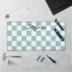 Cute Turquoise Checkers Pattern Name Desk Mat