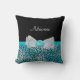 Cute Turquoise Cheetah Print Frilly Bow and Name Throw Pillow