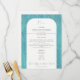 Wedding Menu with cute turquoise watercolor twigs with small flowers with silver contours, elegant floral twigs of soft teal flowers, spring or summer pastel colored floral design, a romantic light green bouquet of wildflowers. Botanical watercolor. Cute flower botany Wedding Menu. Cute Turquoise Flowers Collection.
