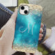 Cute turquoise gold faux glitter monogram Case-Mate iPhone case
