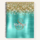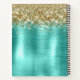 Cute Turquoise Gold Faux Glitter Monogram Notebook