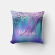 Cute turquoise purple faux glitter monogram personalised Throw pillow. Beautiful, modern and cool Throw Pillow, upgrade the look of your home decor with a unique design on your Throw Pillow or customize it over another product of your choice. This makes the perfect sweet 16 birthday, wedding, bridal shower, anniversary, baby shower or bachelorette party gift for someone that loves glam luxury and chic styles. Whether for valentines day,birthdays, Christmas or as a gift in general it makes a great gift idea for any girl who loves modern sparkly things. PLEASE NOTE: These are flat printed graphics - no real glitter, jewels or raised parts.