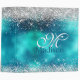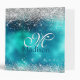 Cute turquoise silver faux glitter monogram 3 ring binder