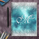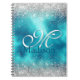 Make back to school fun with this Cute personalised Notebook. It is designed with elegant girly turquoise silver faux glitter .