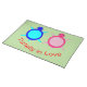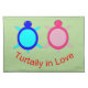 This awesome placemat features a cute image of a blue turtle and a pink turtle side by side. The cute couple have eyes only for eachother and cute little tails. The shell of the turtle is made of two shades of pink for the female and blue for the male. These guys are turtally in love and would make a great gift for couples.