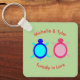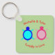 This fun save the date wedding keychain features a cute image of a blue turtle and a pink turtle side by side. The cute couple have eyes only for eachother and cute little tails. The shell of the turtle is made of two shades of pink for the female and blue for the male. These guys are turtally in love and would make a great gift for couples. There is custom text above and below the turtles so you can include names. There is more custom text on the back so you can personalize this keychain with your own text.