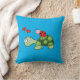 Cute Turtle, Ladybug, and Hearts Blue Throw Pillow