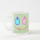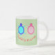 This awesome frosted glass mug features a cute image of a blue turtle and a pink turtle side by side. The cute couple have eyes only for eachother and cute little tails. The shell of the turtle is made of two shades of pink for the female and blue for the male. These guys are turtally in love and would make a great gift for couples.