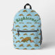 Design front pocket features the image of a turtle with baby turtle. Pattern of this image is displayed throughout. Background is blue to give the impression of water. The word "Righteous!" is displayed as an arch in green and is customizable.