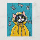 Cute Tuxedo Cat and Raining Mice Illustration Postcard