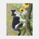 Cute tuxedo cat on a tree branch with sunflowers _ fleece blanket