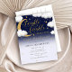 This is an adorable first birthday invitation postcard based on the “Twinkle twinkle little star” nursery rhyme. The design features a cute handwritten script calligraphy font, a golden moon with gold stars and cute fluffy clouds in a twinkling starry night sky. This gender neutral birthday invitation would be perfect for any little star about to celebrate their first birthday!