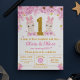 Cute Twins Bunny Rabbit Girls 1st Birthday Party Invitation