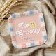 This groovy girls' 2nd birthday paper plate design captures retro 70s vibes with a cute pink theme, floral accents, and a pastel chequered border. Fully customizable, it includes space for a name in an girly script. Perfect for a "Two Groovy" boho birthday, this playful, elegant design adds charm to your little one's special day!