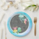 Cute watercolor under sea creatures, sea turtle, sea horse, crab, and jellyfish over watercolor and chalkboard look backdrop paper plate.