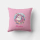 Cute Unicorn & Flowers, Personalize Name Throw Pillow