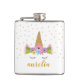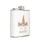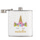 Cute unicorn girlie flask with custom name.