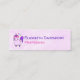 Mini business cards with a whimsical drawing of a cool and funky pink unicorn which has a purple mane and tale. This cute creature is wearing heart-shaped sunglasses and is decorated with little stars. Pink watercolor background.