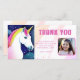 Cute Unicorn Magical Girl Birthday Photo Thank You Card