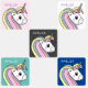 Cute and colorful kids labels with a name - a great way to personalize children`s shoes, backpacks, clothes, notebooks, toys and everything else that leave the house. This simple and cute design features a cute unicorn with a beautiful mane and a child`s name. It`s great for girls. The labels come in different colors - pink, black, white, turquoise and blue. You can also change the background colors - just click the customize button and use the design tool.