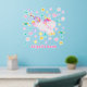 NewParkLane - Cute nursery or kids bedroom wall decal, featuring a sweet jumping unicorn, surrounded with whimsicial colorful stars, flowers and hearts, against a blush pink background, and a text template for your child's name or other personal text.