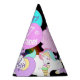Black or choose your custom theme colors. Cute and Sweet smiling Pastel Rainbow Unicorns and a Narwhal eating Ice cream cones on a cute party hat. Personalized Birthday Name, age and "Occasion.. Perfect for Birthdays, Its a Girl!, Announcements, Graduation, Anniversary Party favors.. Choose your own background color, fun fonts and new filters to help create your special party hats!