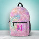 cute unicorn pink faux glitter rhinestone monogram Backpack. It is designed with elegant girly silver and iridescent faux glitter in unicorn, rainbow in pink, aqua and mint.
