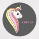 Cute and colorful kids labels with a name - a great way to personalize children`s shoes, backpacks, clothes, notebooks, toys and everything else that leave the house. This simple and cute design features a cute unicorn with a beautiful mane and a child`s name. It`s great for girls. The labels come in three different colors - pink, black and white. You can also change the background colors - just click the customize button and use the design tool.