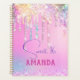 Make back to school fun with this Cute personalised Notebook. It is designed with elegant girly iridescent glitter drips in unicorn rainbow pink.