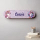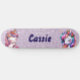 Two cute baby unicorns with flower accents and pastel rainbow colours add a playfulness to the skateboard which has a background is faux pink glitter. A deep purple script lettering adds a personalized touch to the skateboard, which makes a great gift idea for those girls that love skateboarding. It can also be used as cute wall decor in their rooms.