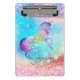 Cute unicorn pink Glitter rainbow aqua monogram Mini Clipboard