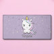 A purple play mat with a cute unicorn in pastel color, a polka dots background and a customizable forename: a nice idea gift for a girl's birthday. It also could be used as a desk mat for your office decoration!