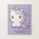 A purple puzzle with a cute unicorn in pastel color and a customizable forename: a nice gift idea to a teen girl who love Kawaii fantasy animals!