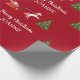 Elegant, minimalist Christmas wrapping paper with a unicorn pulling Santa's sleigh toward a Xmas tree decorated with silver baubles. The unicorn has a red and golden mane and tail and the sleigh carries Santa along with many presents. The wrapping paper also includes the greeting "Merry Christmas" and the name Joanne. Remember to personalize the name! You can also change the greeting to "Happy Holidays" if you wish. On a Xmas red background.