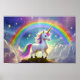 Cute Unicorn standing in front of a rainbow Poster