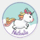 Pastel sticker with name, featuring a cute chubby unicorn on a cloud.